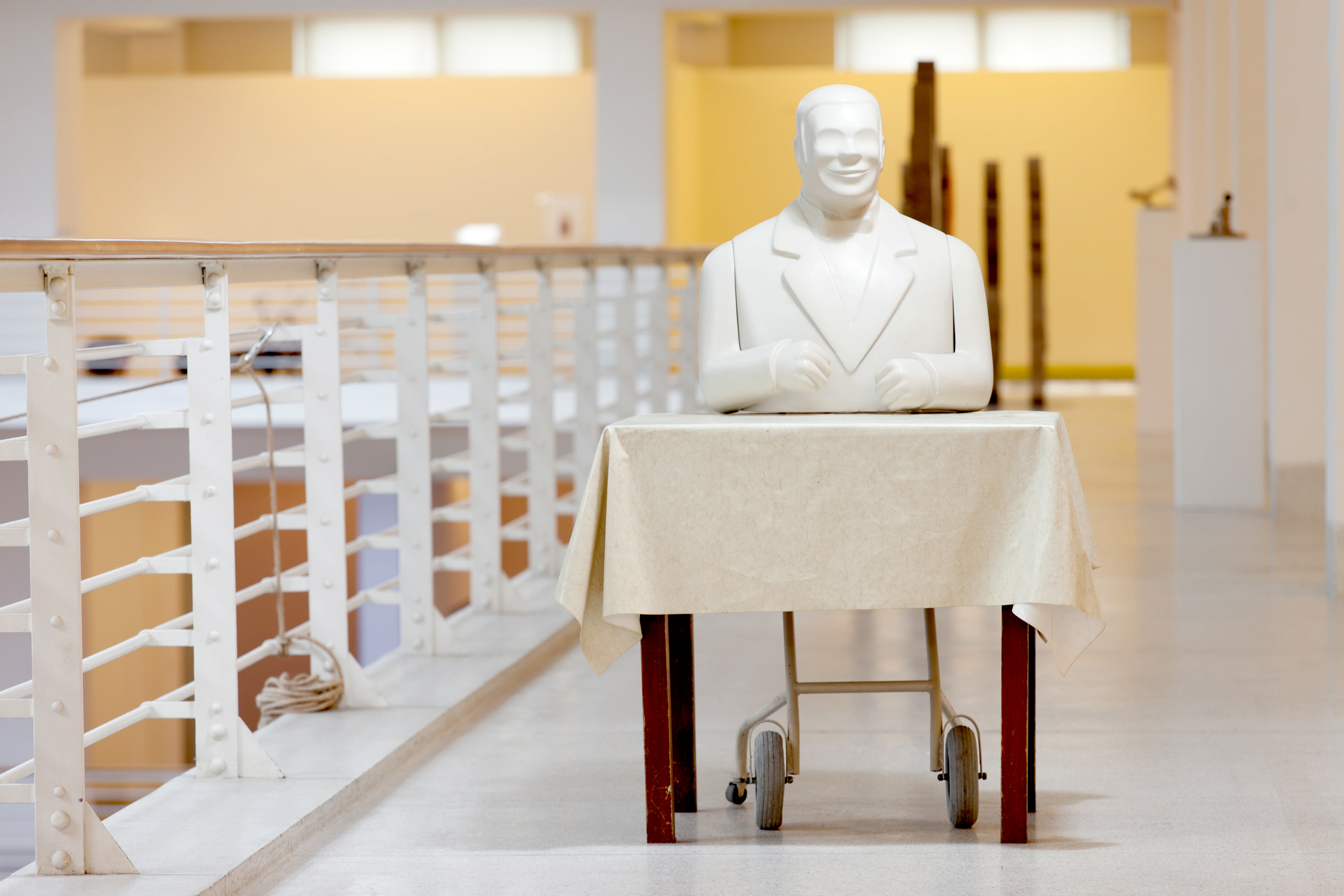 Jan Pospíšil *1973, absolvent AVU (ateliér sochařství prof. Karla Nepraše) ředitel sochařského sympozia konaného v Hořicích, studium v zahraničí – USA, Mexico. Sochař s drsným vizuálním jazykem. U svých prací upřednostňuje syrovost humoru. Očekávané šťastné okamžiky jsou v jakési poslední fázi rozkladu, deziluze jde až k vysmívání sobě samotnému. Umělcova díla se pohybují mezi sochou a objektem, směřují k říši sci-fi, zvráceným pomůckám černé budoucnosti.