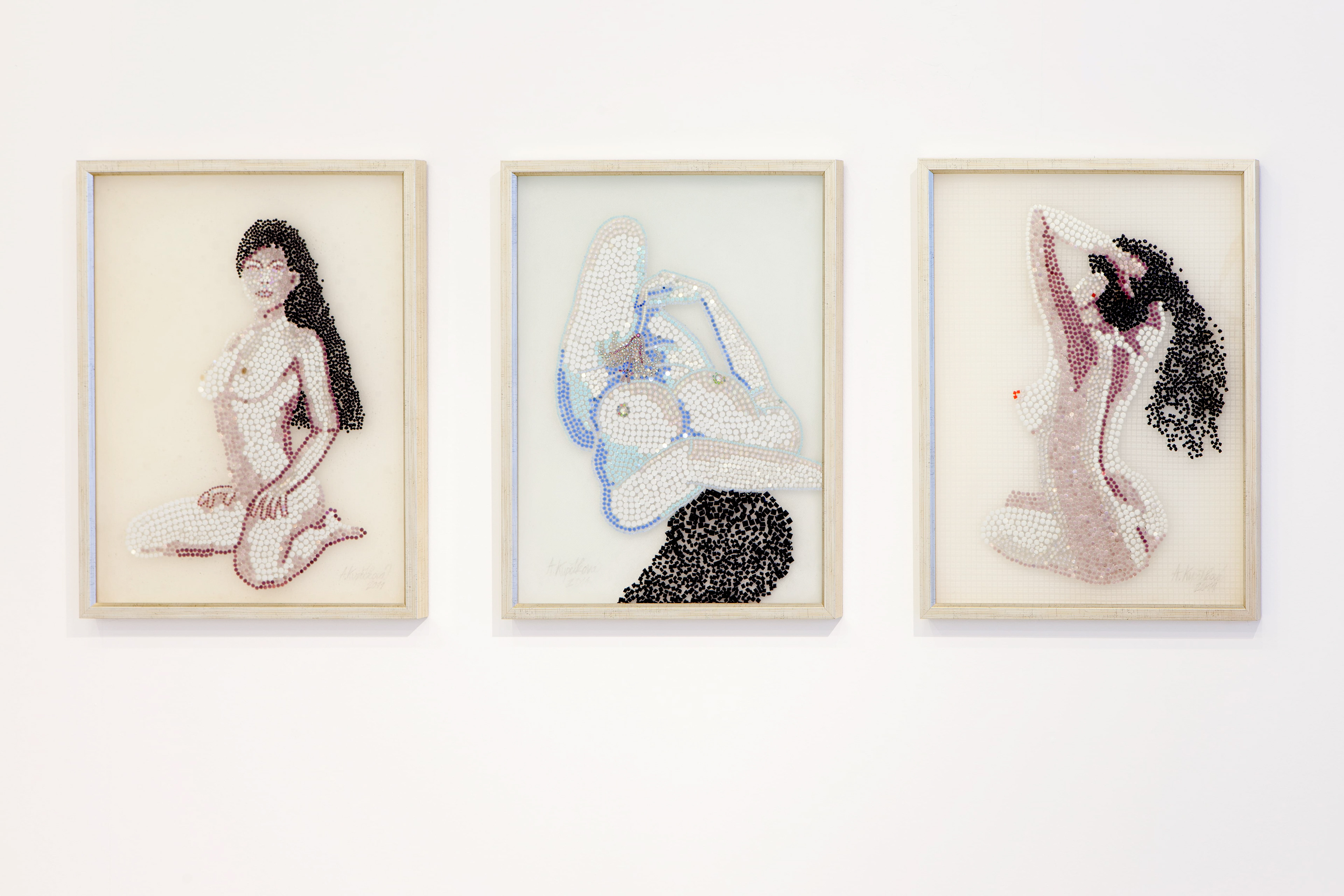 Alena Kupčíková *1976, absolventka AVU (ateliér monumentální tvorby prof. Aleše Veselého, Ph.D., studium u prof. Milana Knížáka), studia ve Francii a Jihoafrické republice www.alenakupcikova.cz Umělkyně známá především svými chlupatými díly je také autorka řady instalací a projektů s výraznými konceptuálními rysy a mezioborovými přesahy. „Chlupatice“ jsou provokativní erotická díla ponořená až v samý základ lidské sexuality a odlehčená zvláštním tajemným závojem studu a intimity. Umělkyně známá především pro svou provokativní tvorbu v poslední době pracuje také s velice luxusními materiály – zlatem a brilianty – zlaté a stříbrné chlupatice. Od roku 2011 vznikají díla z křišťálových kamenů české značky Preciosa – série Orchestrální pohled na bytí lidských stop, unikátní projekt s myšlenkovým základem propojujícím vizuální umění a hudbu, diamantové i křišťálové ženy. Kromě toho se autorka zabývá i malbou – malba jedním chloupkem olejovou barvou na plátno.