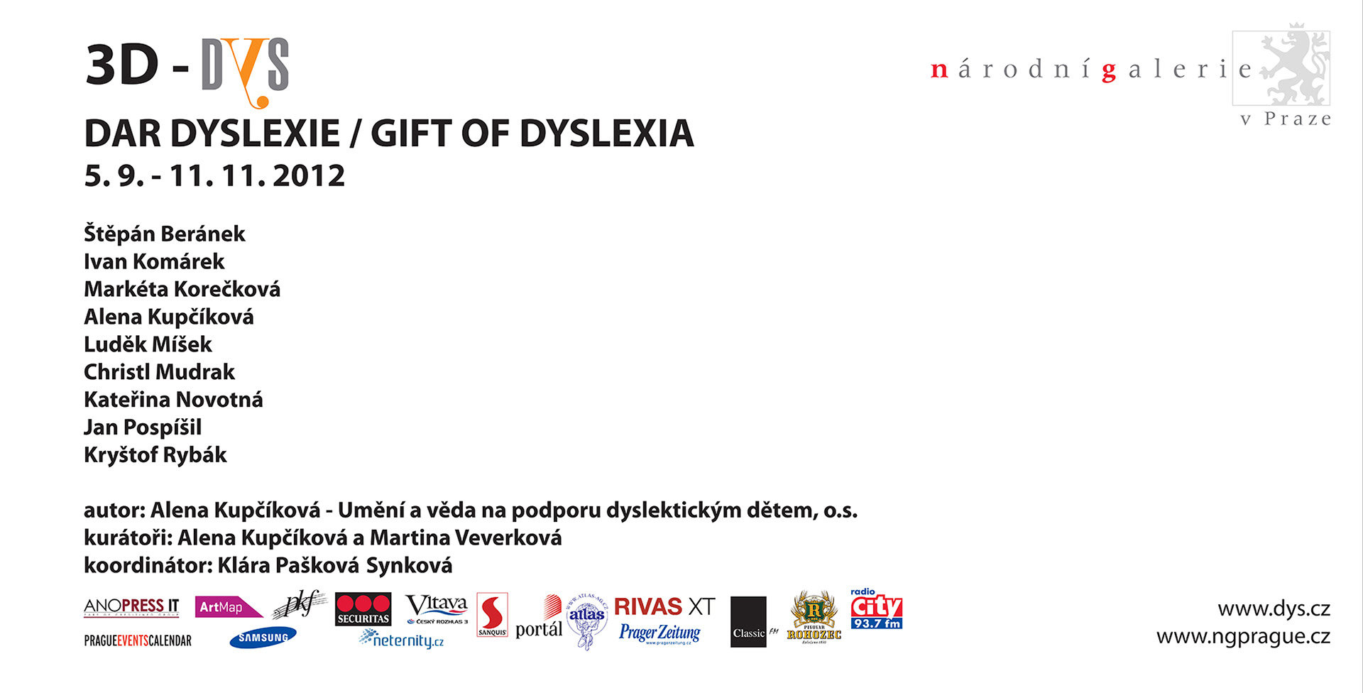 Jako hlavní téma výstavy jsme zvolili záměrně 3D, které se úzce váže k problematice dyslexie. Forma 3D je ve výtvarném umění možná jak technicky, tak fyzicky jednou z nejtěžších. Výběr umělců byl spontánní, všichni jsou propojeni s Akademií výtvarných umění v Praze a jako umělci i lidé se dobře známe, takže přetvářka, kdo není a je dys, nebyla na místě.