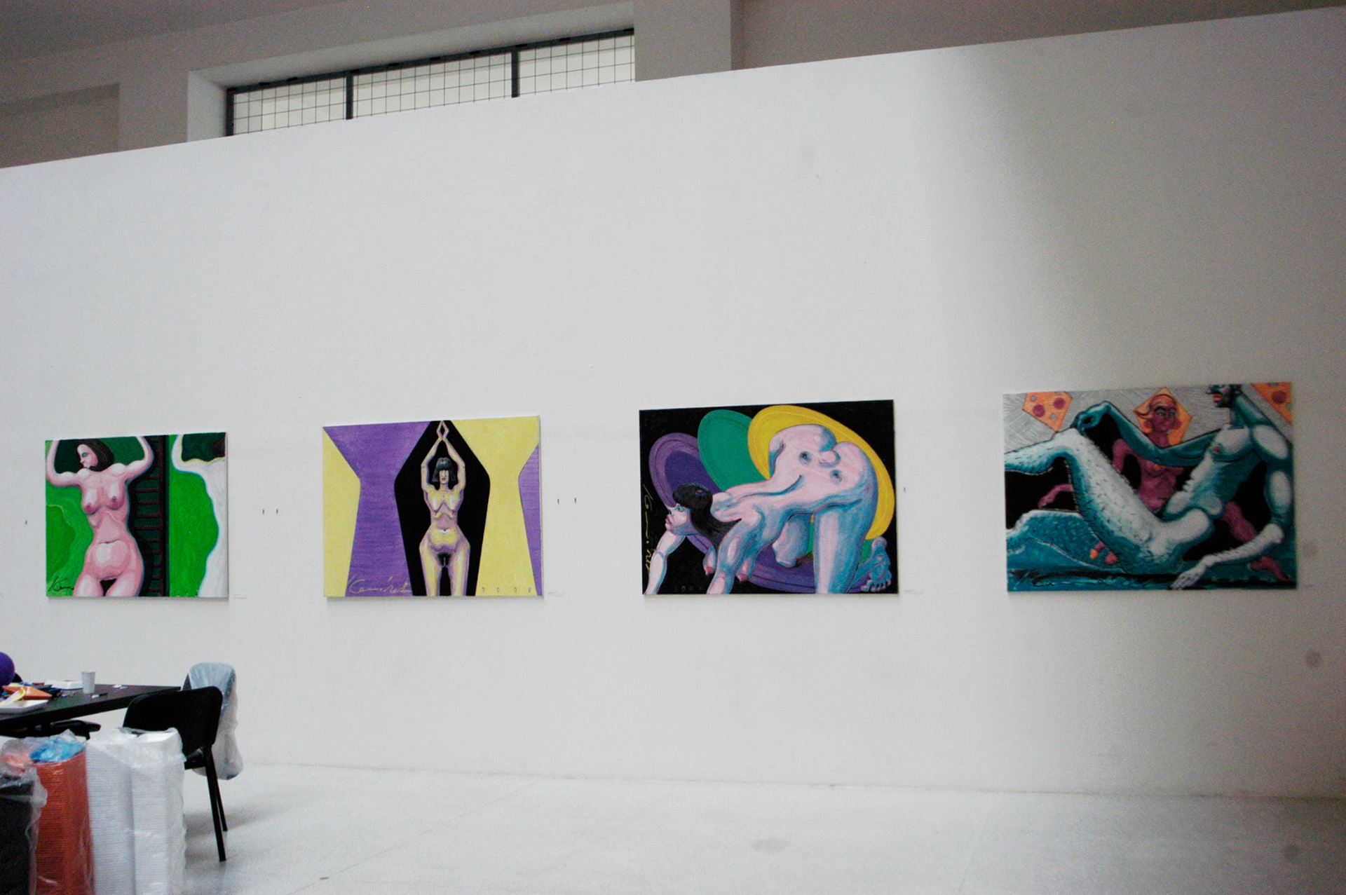 Christl Mudraková (DE) www.christlmudrak.com absolventka Kunstschule Berlin, studium na Goldsmiths College v Londýně v současnosti – Ph.D. na AVU v Praze, hostující profesorka v ateliéru malby Kunstschule Berlin (do roku 2012 asistentka v ateliéru architektury a umění ETH Zürich) Německá konceptuální umělkyně přináší ve své tvorbě kompletní „vymazání“ reality, fyzického prostředí. Nahrazuje je obrazovým prostorem, respektive jeho maximizováním. Rituálně používá barevnou linku vedenou do spirály a fluorescenční barvy. Instalace v prostoru zasahuje diváka linkou plně pokrývající celou místnost. Ta diváka obklopí jako kokon, jenž ho vtahuje dovnitř a uvádí do jednoty.